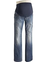 Old Navy maternity jeans. For your second and third trimesters these boot-cut jeans may prove to be good as gold. The panel of soft stretchy jersey over your belly will be comfy and offer some support. Plus the vine on the back pockets is embroidered with sequins adding a pretty gold accent. - Smooth stretch jersey panel Faux fly Riveted scoop pockets in front Back patch pockets feature embroidered and sequined vines Medium wash distressed finish[]