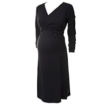 Dress with innovative wrap design. Perfect for pregnancy and nursing. The lower part/skirt is pulled over the stomach or waist with elastic. The upper part is a wrap-around solution that can be opened for nursing. Knee-length. 95% cotton 5 % elastane